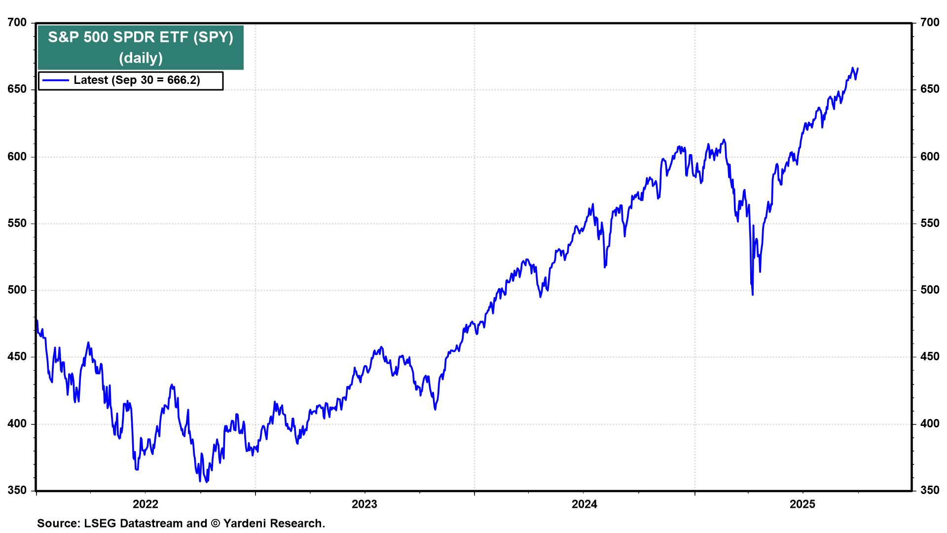 So what does the latest 666 mean? Might it be signaling a market top this time? If so, then we can see that happening for the Magnificent-7, as investors struggle to fathom whether all their spending on AI infrastructure will ever be profitable. Meanwhile, the S&P 493 should continue rising on solid earnings. On balance, the S&P 500 should end the year at a new high of around 6800.