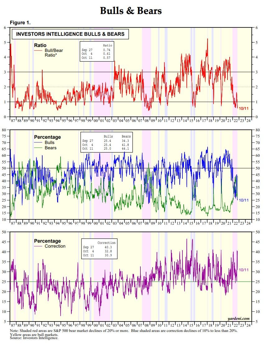 So far, widespread bearishness hasn't worked as a contrary bullish signal. Readings below 1.0 in the Bull-Bear Ratio (BBR) have often marked the bottoms of corrections (charts below). But during bear markets, such readings can persist. In the current bear market, contrarians have been up against the old adage: "Don't fight the Fed."