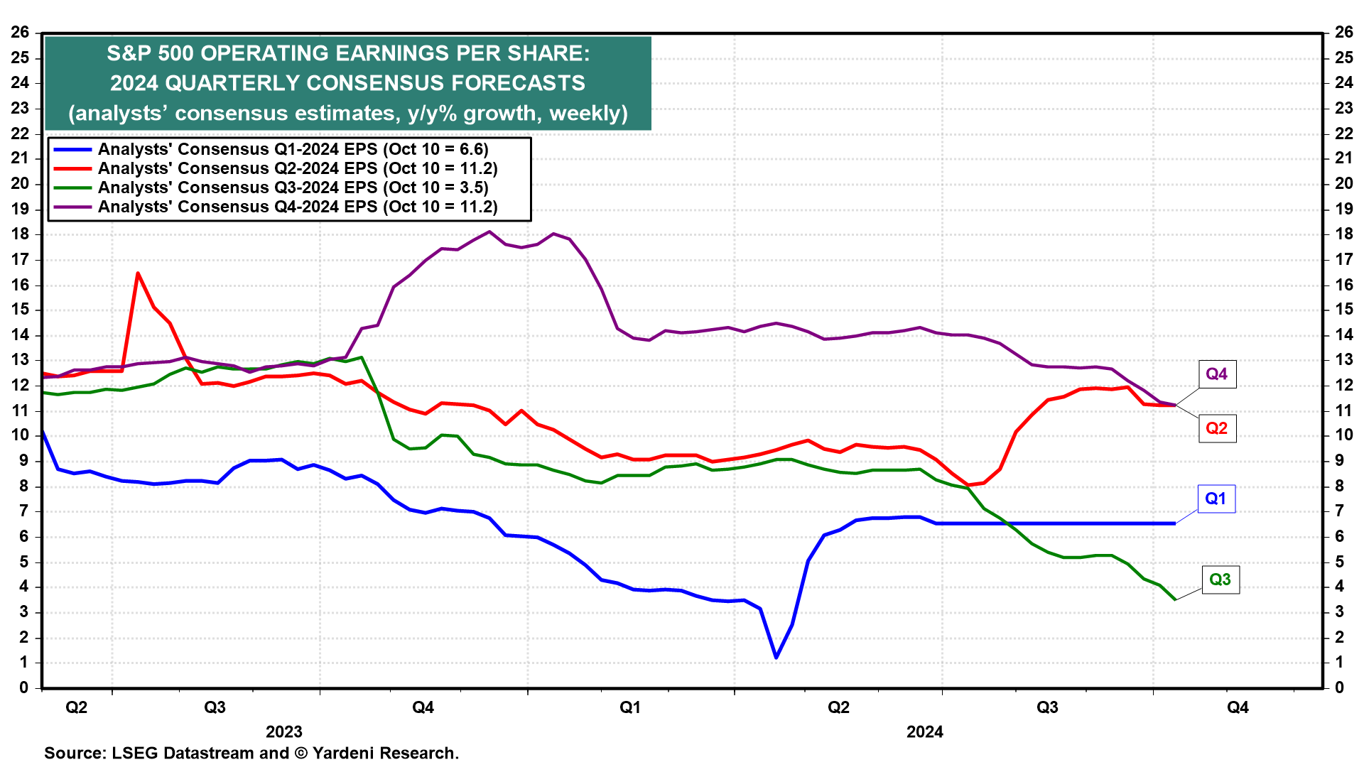 The third year of the current bull market in stocks got off to a good start this week. It's likely that the Q3 earnings reporting season will be better than expected as suggested by the results reported yesterday and today by some of the major companies in the S&P 500 Financials sector. On Sunday, we wrote that industry analysts expected S&P 500 earnings to be up 3.5% y/y during Q3, but we expect at least twice as much growth (chart). So far, so good.