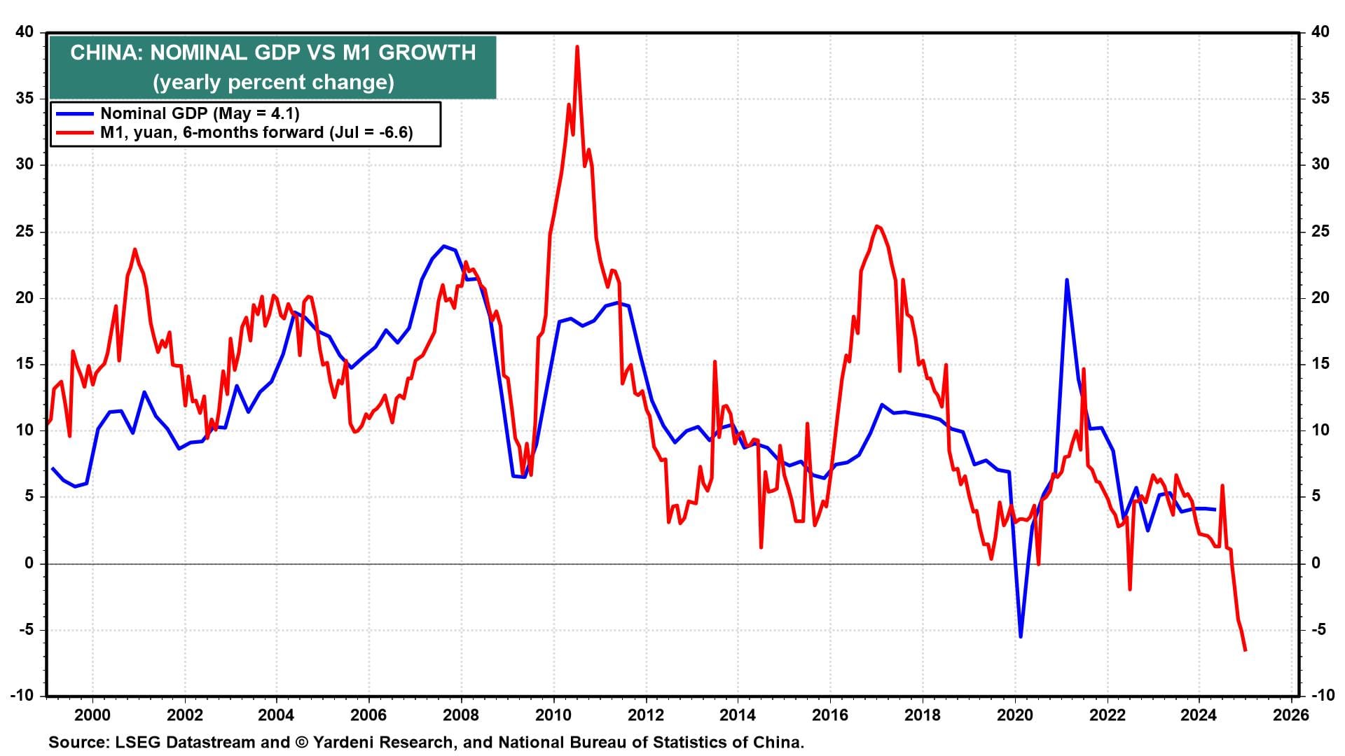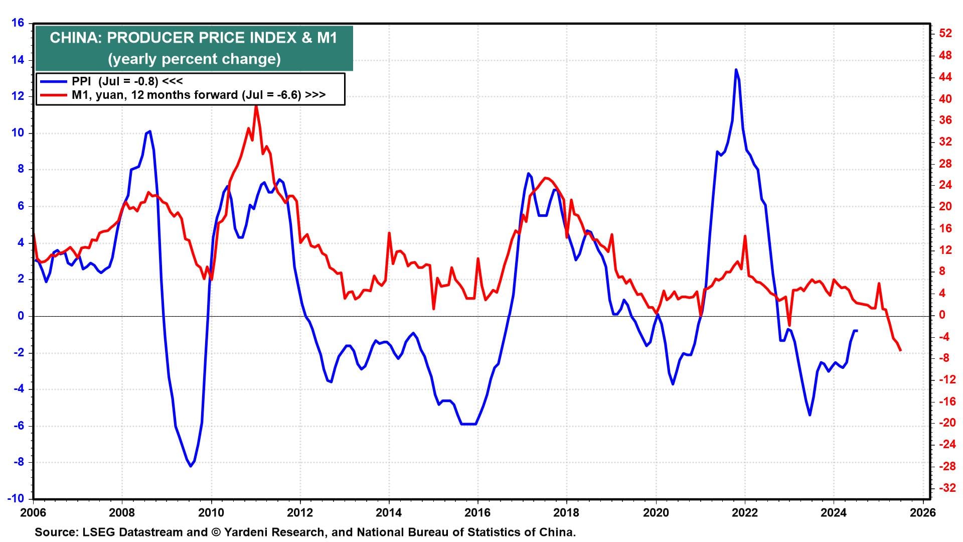 (6) Negative growth in M1 suggests that deflationary pressures on China's producer price index will persist over the coming 12 months.