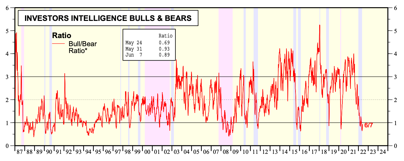 Stock market sentiment remains bearish, which is bullish for longer-term investors with a contrarian streak. Consider the following: