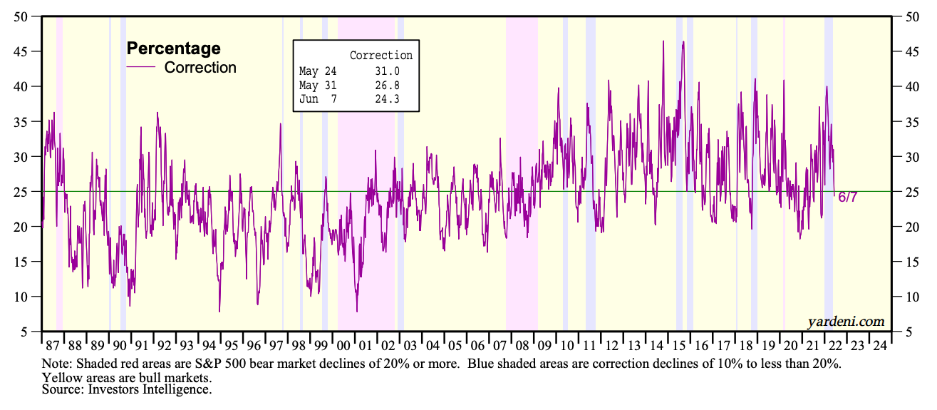 (2) The percentage in the correction camp has dropped for the fifth time in seven weeks from 34.6% to 24.3%; it was as high as 40.0% in early February.