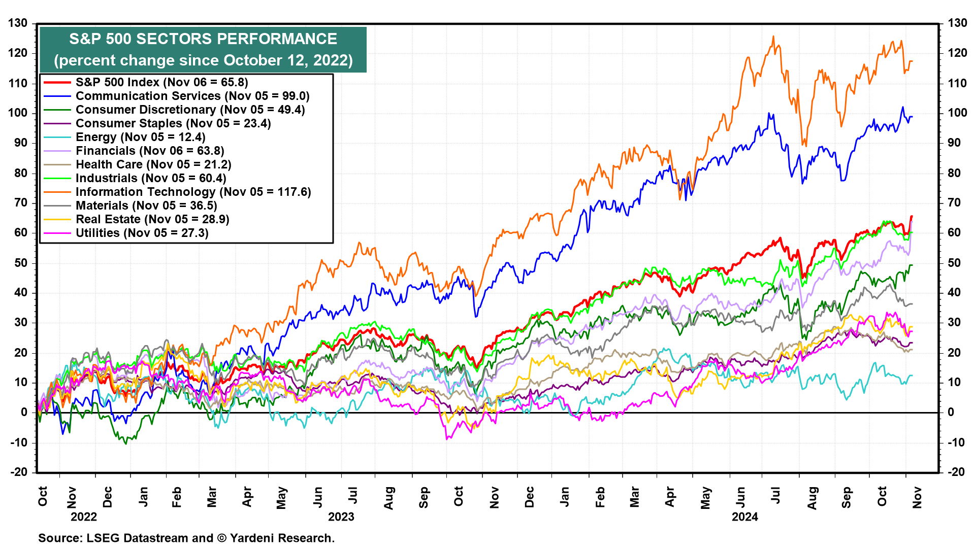 Donald Trump's win and the Republican sweep of the House (probably) and the Senate (certainly) is consistent with our Roaring 2020s scenario. Indeed, it increases the odds that the good times will continue through the end of the decade and possibly into the 2030s. Stocks soared today on the widespread perception that Trump 2.0 will include a cut in the corporate tax rate and reductions in business regulations.