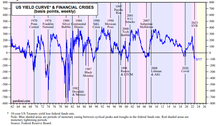 The inverted yield curve has been predicting since last summer that something will break in the financial system as a result of the Fed's abrupt pivoting away from free money. Silicon Valley Bank is that broken something that has raised concern about small community and regional banks (chart).