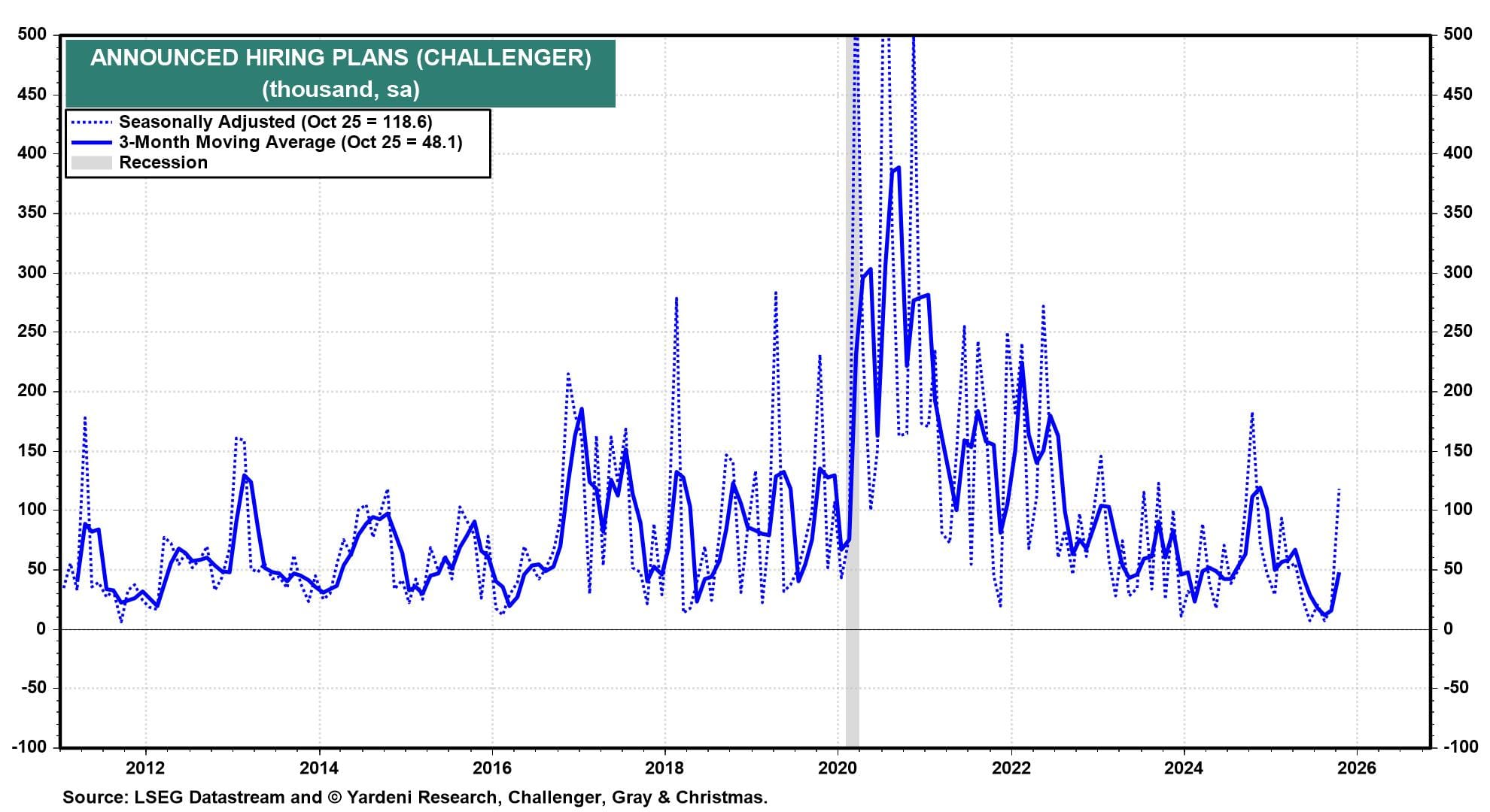 Meanwhile, announced hiring plans also spiked higher in October, according to seasonally adjusted data (chart).