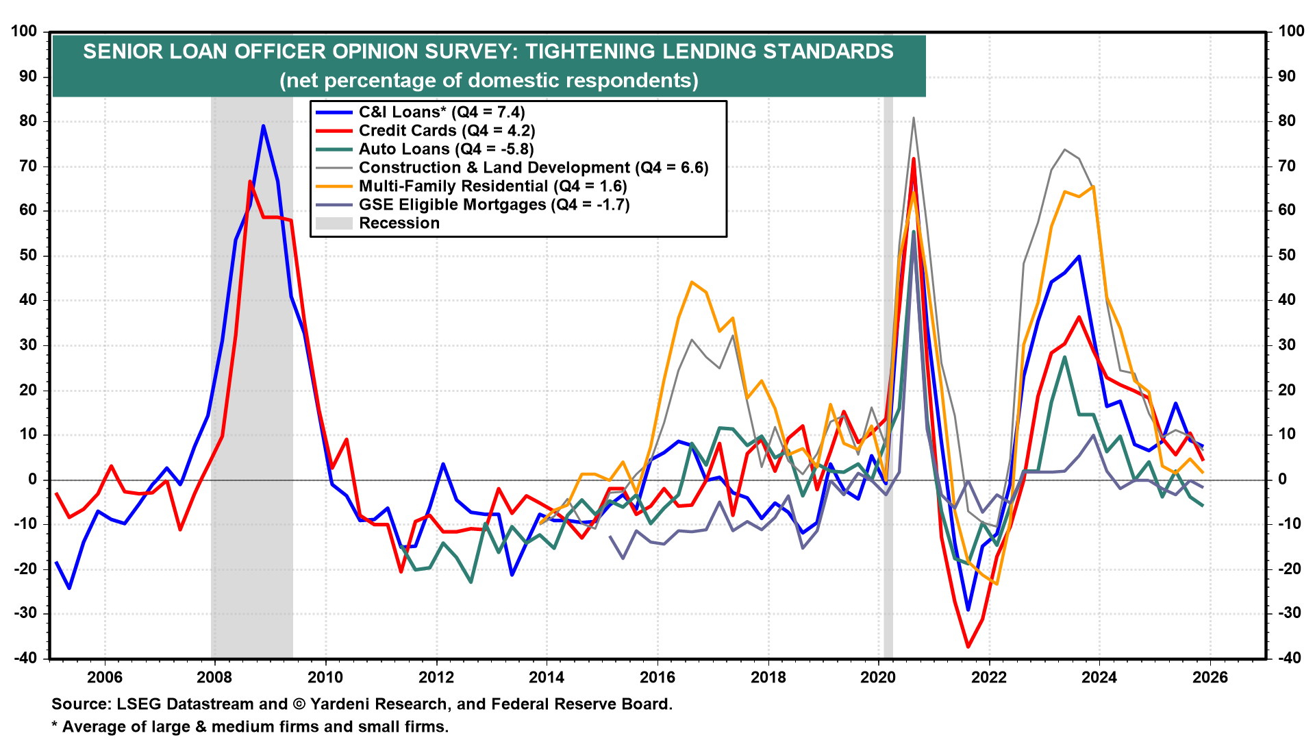 By the way, it's also good news that the percentage of senior loan officers tightening lending standards remains low (chart).