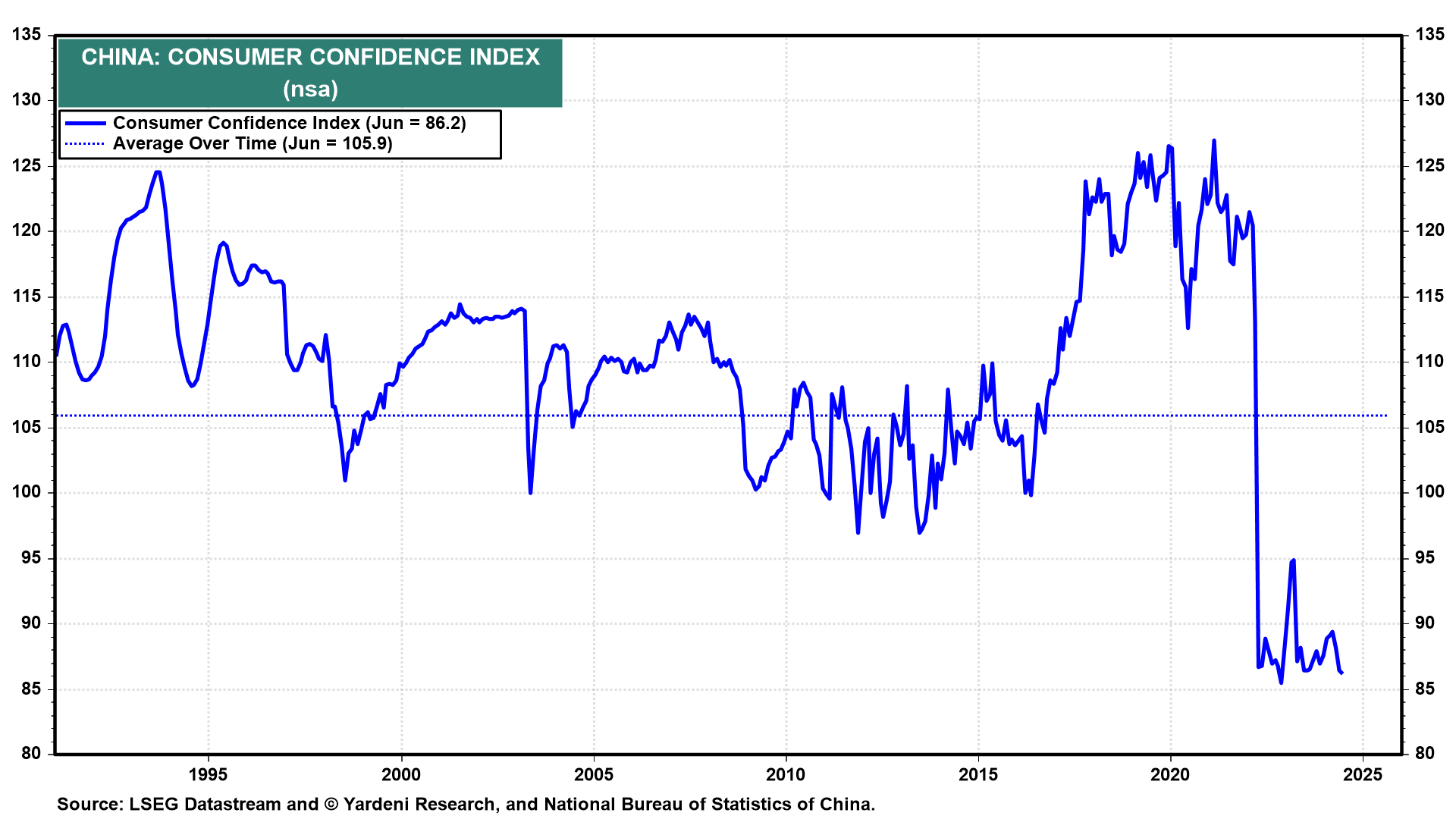 Given the significant negative wealth effect from falling real estate and stock prices, it's no wonder that consumer confidence remains remarkable depressed in China (chart).