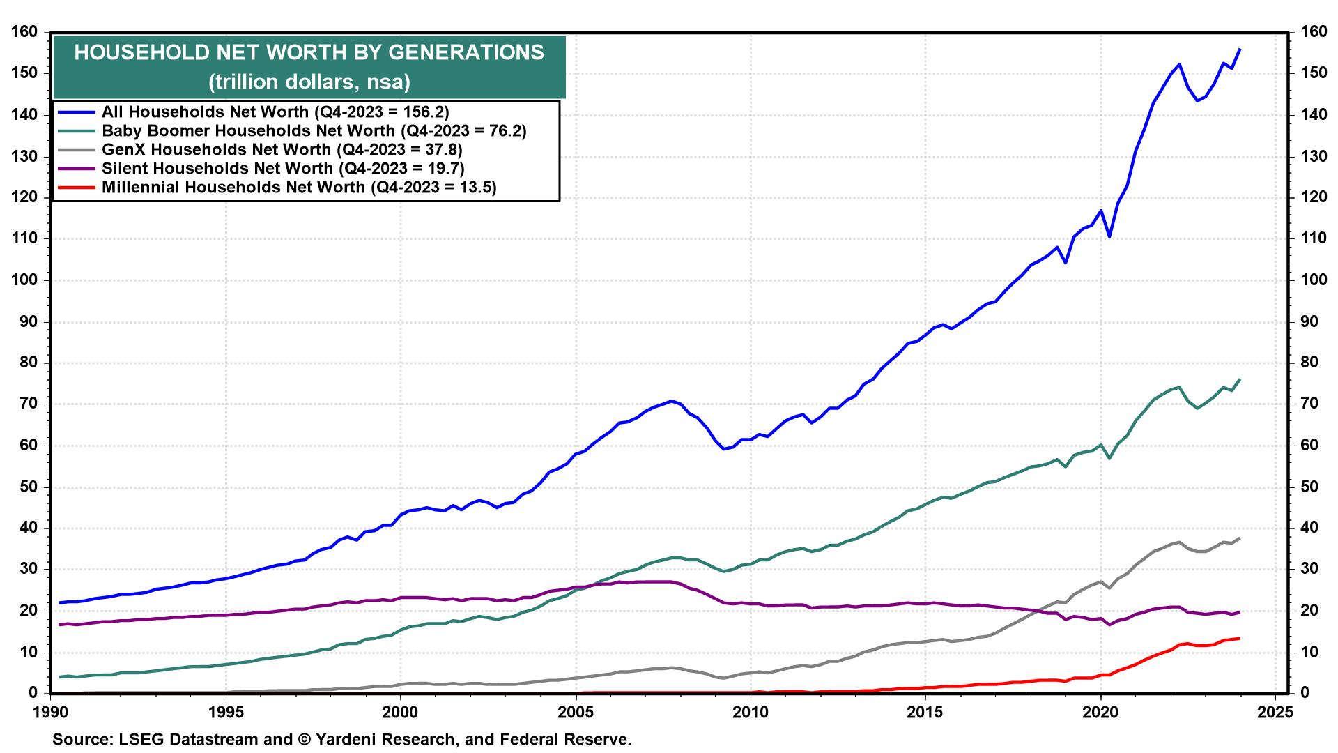 (1/4) Sure enough, two San Francisco Fed economists in a May 3 post observed that “[t]he latest estimates of overall pandemic excess savings remaining in the U.S. economy have turned negative, suggesting that American households fully spent their pandemic-era savings as of March 2024.” Nevertheless, they came to the same conclusion that we have: “The path of consumer spending in the United States is difficult to forecast with any degree of accuracy. Nevertheless, the depletion of these excess savings is unlikely to result in American households sharply cutting their spending levels as long as they are able to support their consumption habits through continuous employment or wage gains, other forms of wealth—including non-pandemic-related savings—and higher debt.”
