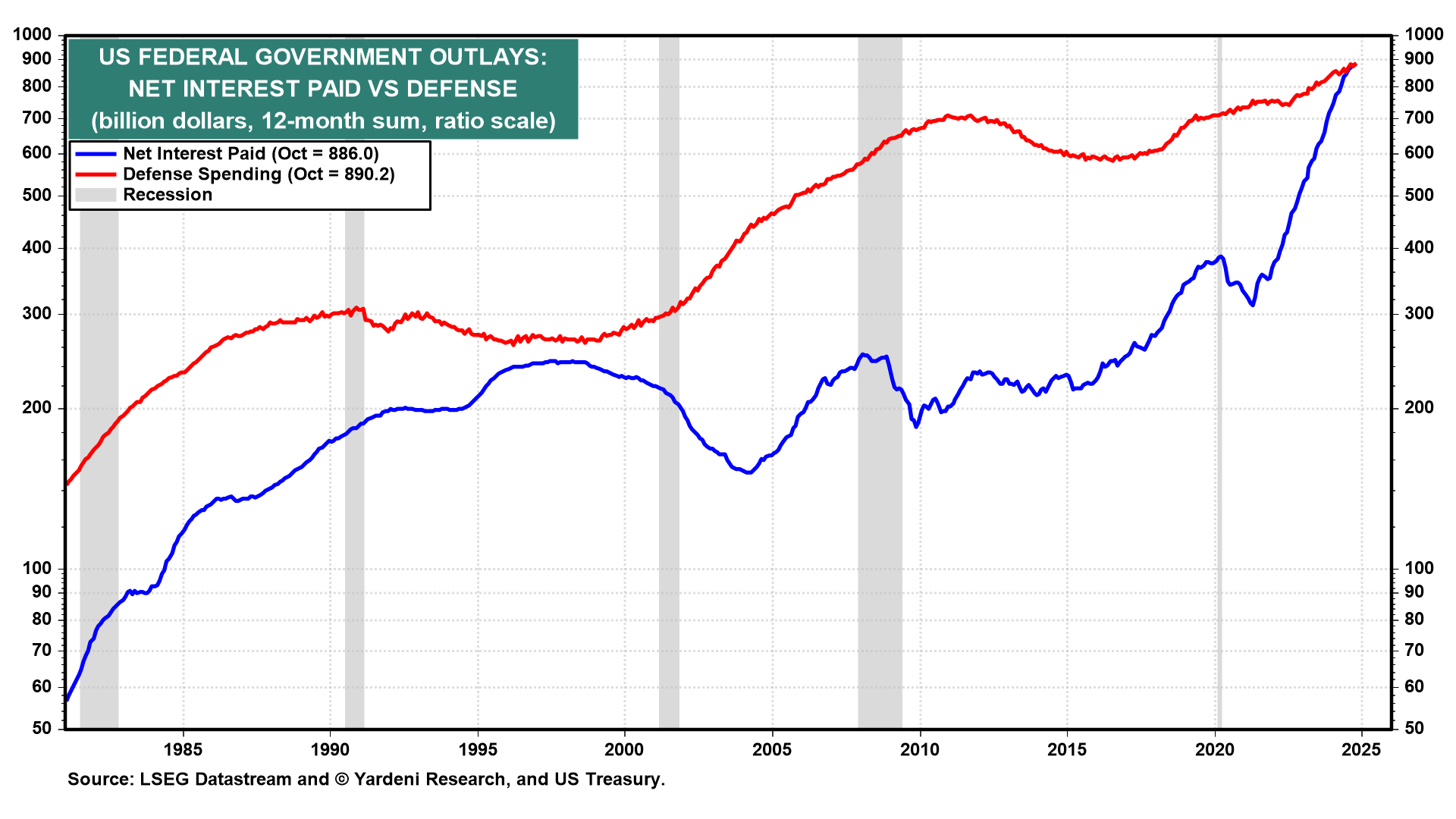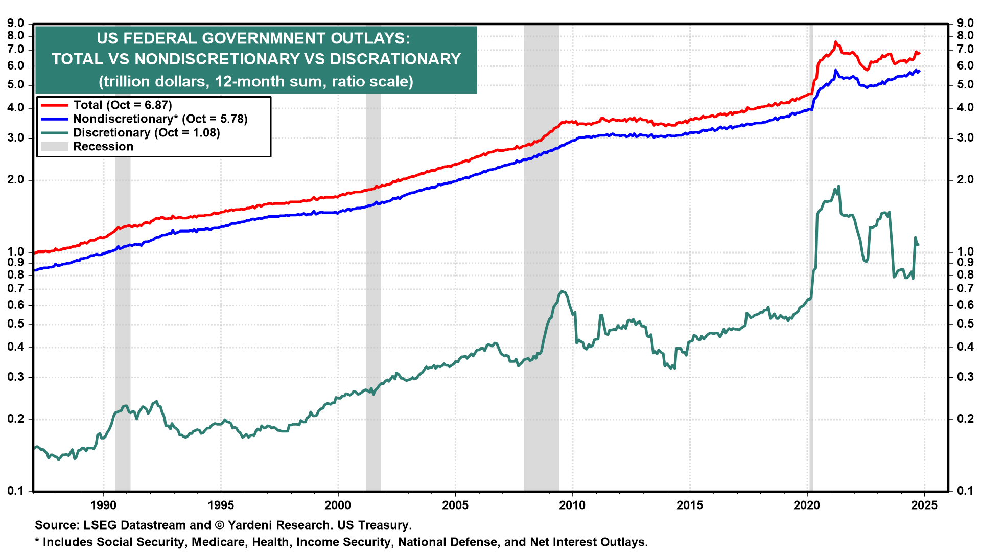 The naysayers continue to raise doubts about the resilience of the economy. Some of them concede that they were wrong about expecting a recession in response to the tightening of monetary policy over the past three years. However, they blame their error on fiscal policy, which they (now) correctly observe has been very stimulative but doubt it will be for long. (We’ve identified several additional reasons for the economy’s resilience over the past three years.)