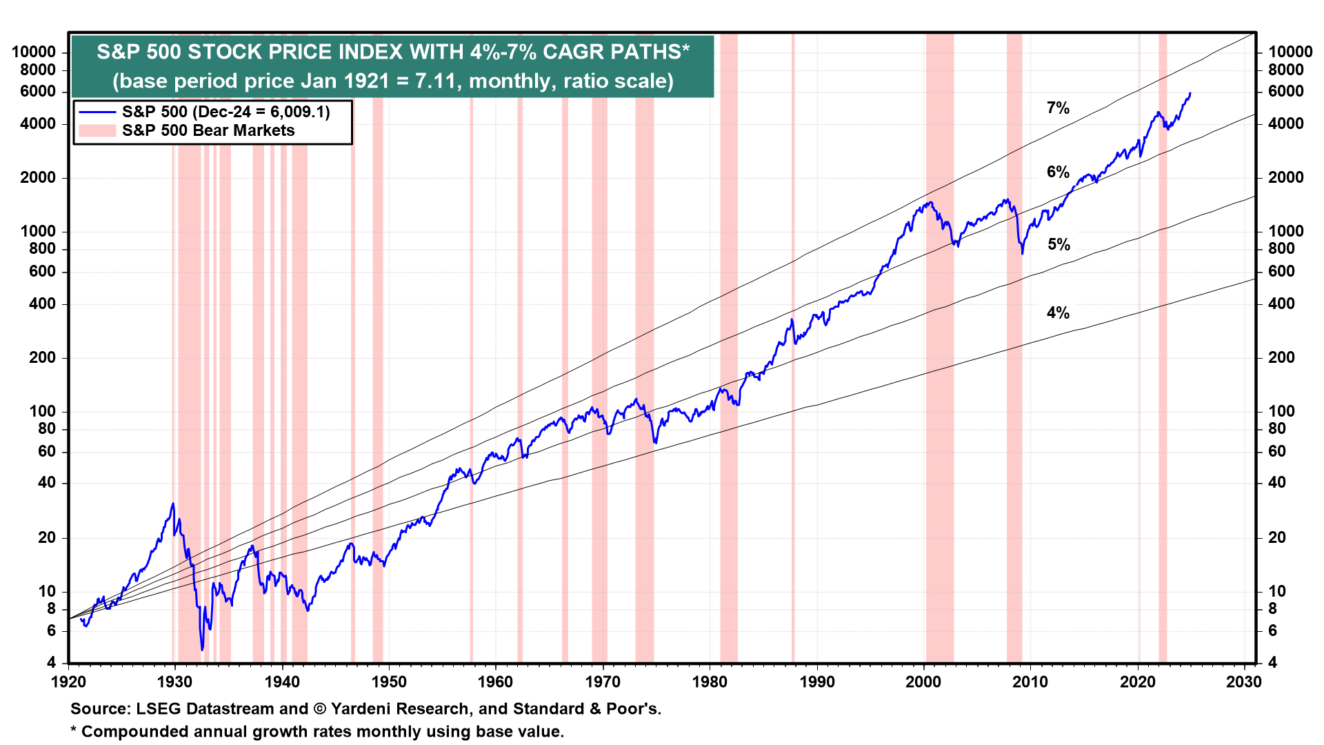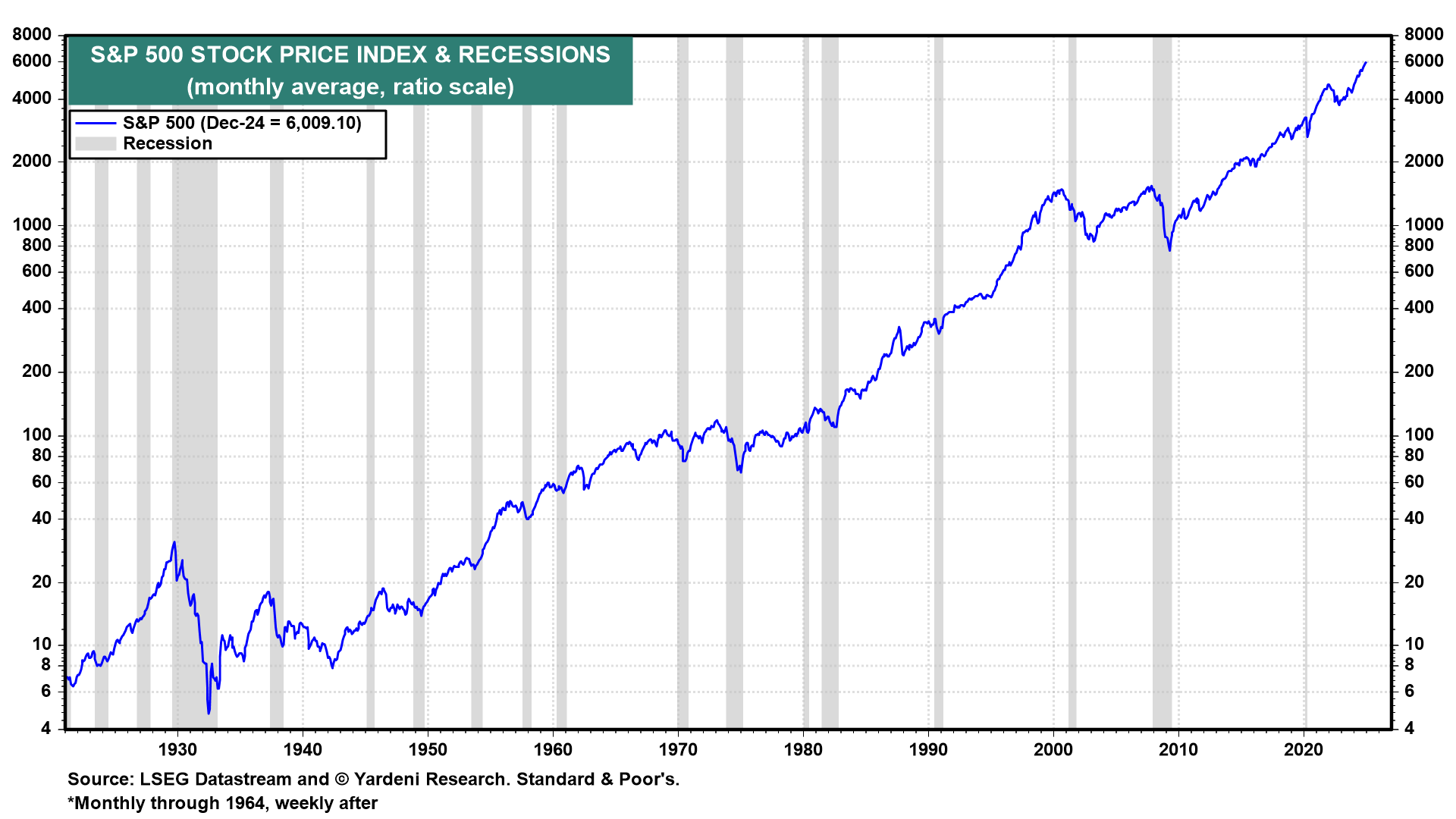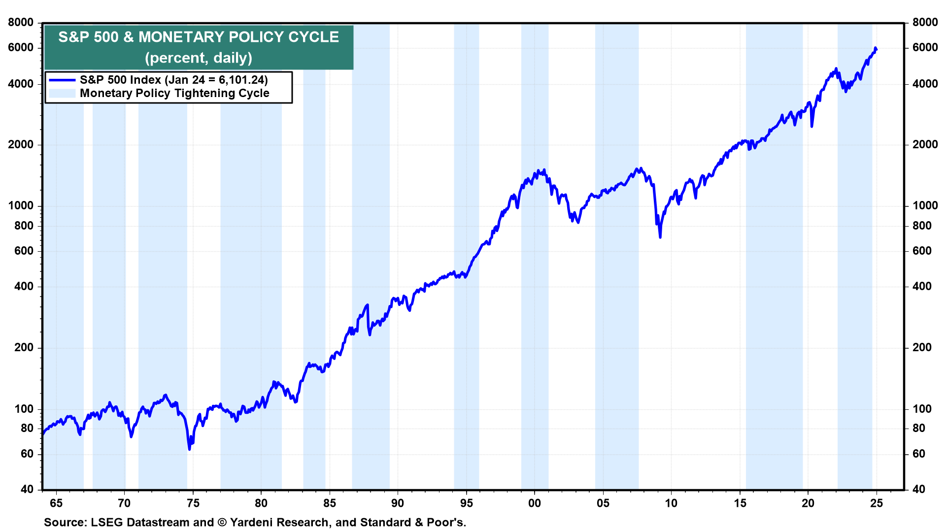 Will DeepSeek cause a bear market? Since the late 1920s, there have been 22 bear markets in the S&P 500 (Fig. 1 below). Over the same period, there have been 17 recessions (Fig. 2 below). In other words, more often than not, bear markets are caused by recessions. And more often than not, bear markets and recessions are caused by the tightening of monetary policy—not because tightening eventually curbs demand, as often assumed, but because tightening triggers a financial crisis that balloons into an economy-wide credit crunch, and that causes a recession (Fig. 3 below and Fig. 4 below).
