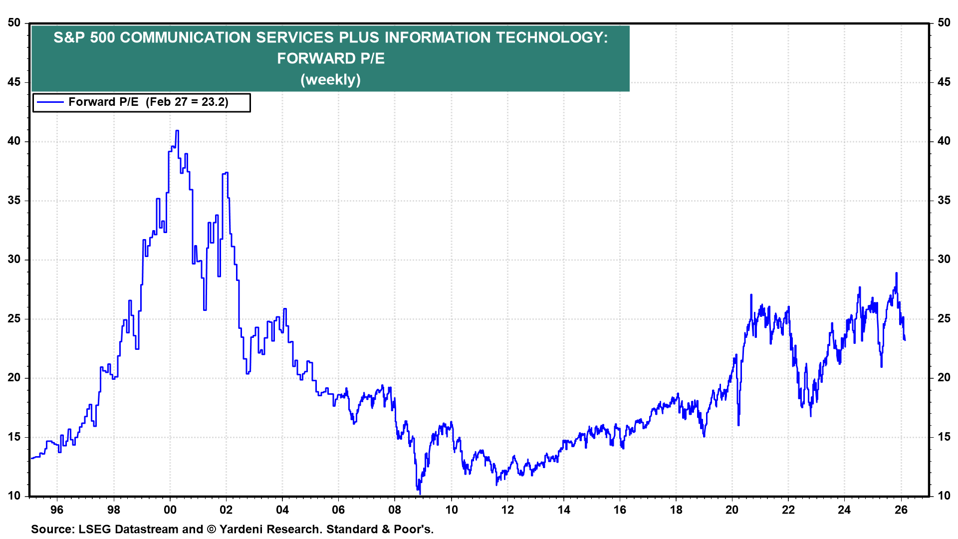 Of course, we could be wrong about the length of the war and the spike in oil prices. During the 1970s, the two oil shocks in the Middle East boosted inflation and interest rates and depressed stock markets worldwide. For now, we are still assigning a 20% subjective probability to our risk bucket of everything that could go wrong. Stay tuned.