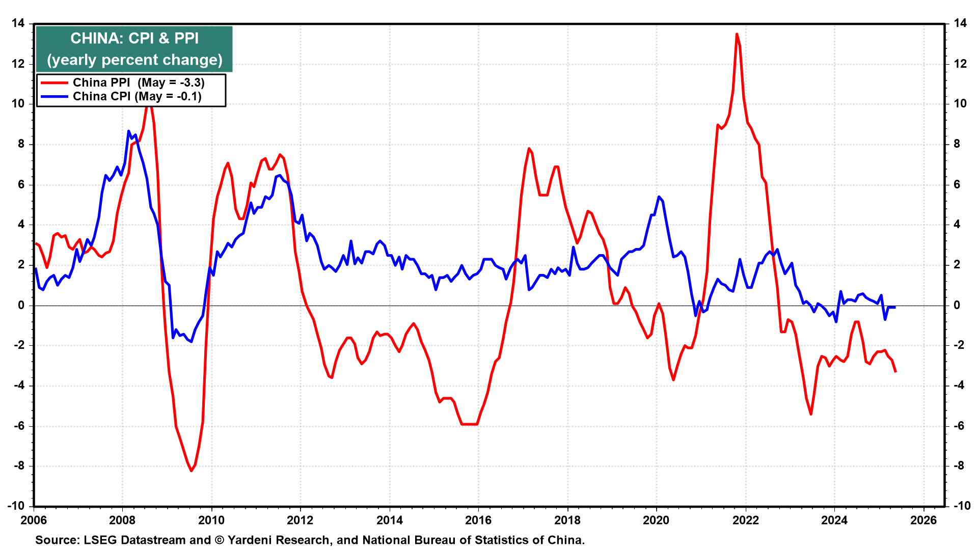 Price wars in the auto sector may be exacerbating the nation’s deflation trend going forward. Under the surface, meanwhile, this falling-price dynamic is thriving. Producer prices fell 3.3% y/y in May, the largest drop since July 2023.