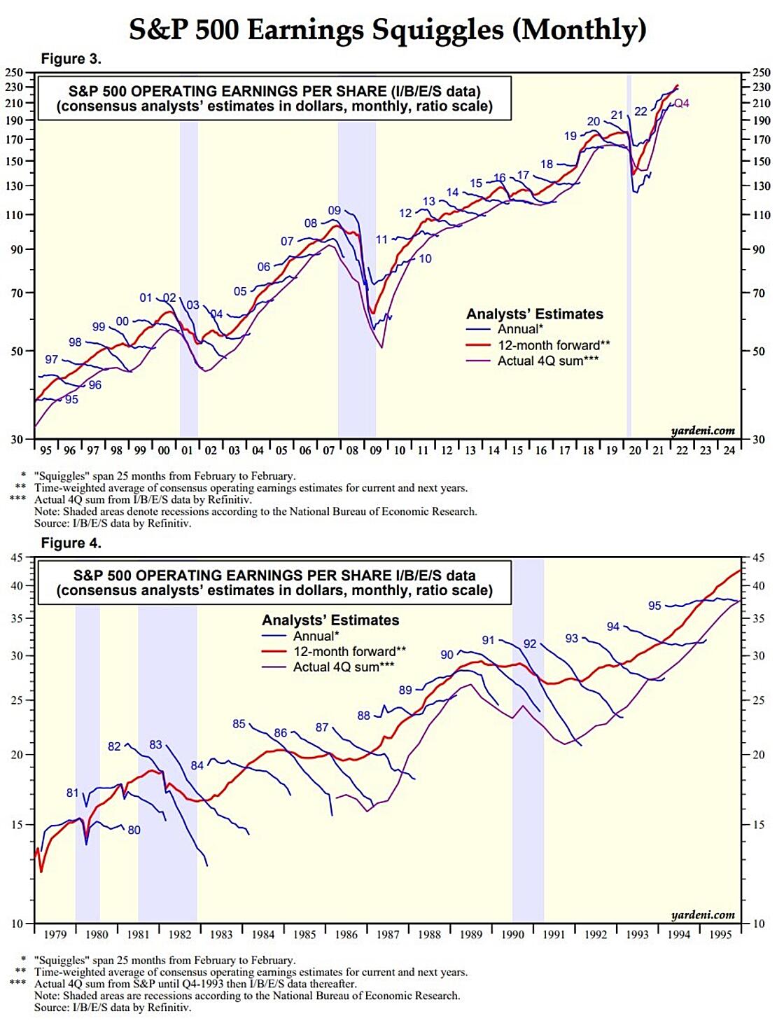 (2) In the past, analysts’ annual earnings estimates often tended to start out too optimistic when first projected and to get whittled down as the end of each year approaches. However, they were actually too pessimistic following the previous three recessions and had to be revised higher. Currently, inflation also seems to be driving earnings estimates higher.