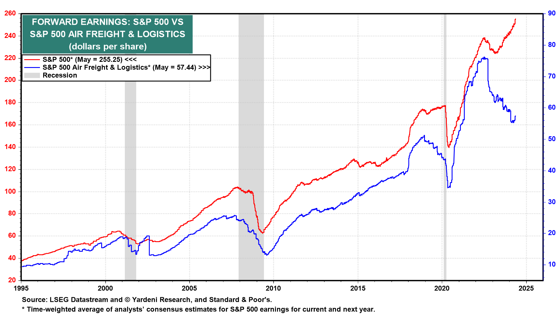 The Dow Jones Industrial Average closed above 40,000 for the first time on Friday, May 17 (chart). Today it is back down slightly below this level. We hope the title of this QT doesn't turn out to be a jinx, but we are still aiming for Dow 60,000 by 2030 in our Roaring 2020s scenario. Along the way, there could be corrections and even another bear market. But we expect that earnings will drive the stock market higher.