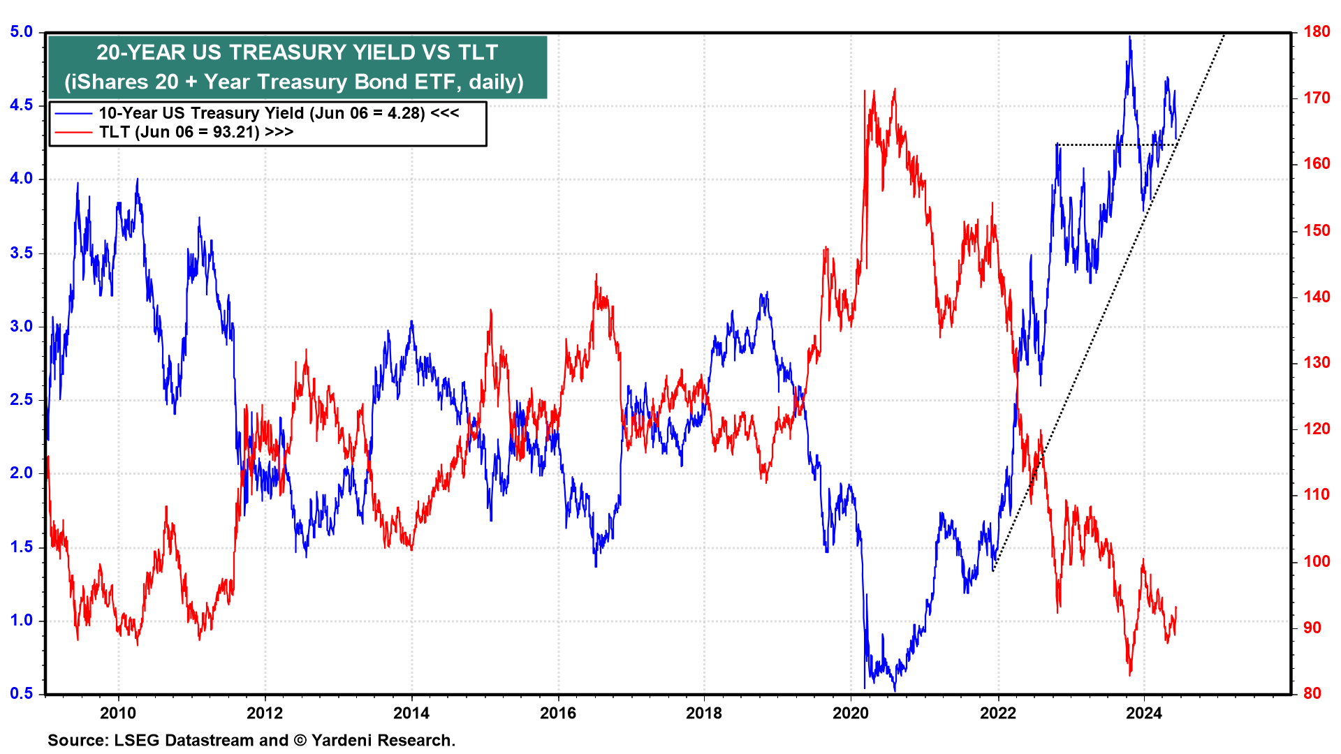 So where is Waldo? In the past, the Fed usually led the pack of central banks. The financial markets are expecting the Fed will soon join the rate pack with a cut. The 10-year US Treasury bond yield has dropped sharply in recent days to 4.28%. Tomorrow's May employment report should determine whether the yield will bounce off 4.25% or drop below it (chart). We've been forecasting a range of 4.00%-5.00% with the yield mostly below the midpoint of this range this year.
