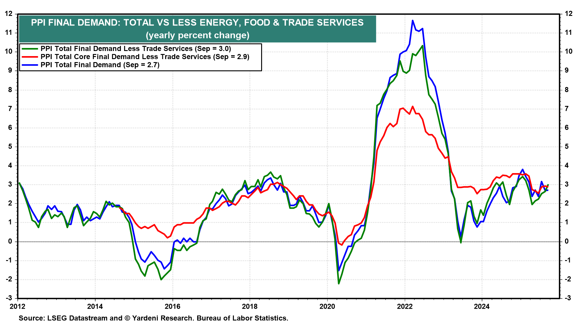 (3) PPI. October's belated PPI (Thu) might show that inflation remains stuck just south of 3.0% y/y (chart).