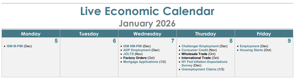 With the holidays behind us, the first full trading week of the year is a busy one on the data front. The big focus, naturally, is on the December employment report. It's the first "full" release since the government shutdown caused data interruptions. It also marks a return to normalcy for investors eager to gauge how the Fed might proceed in the weeks ahead.
