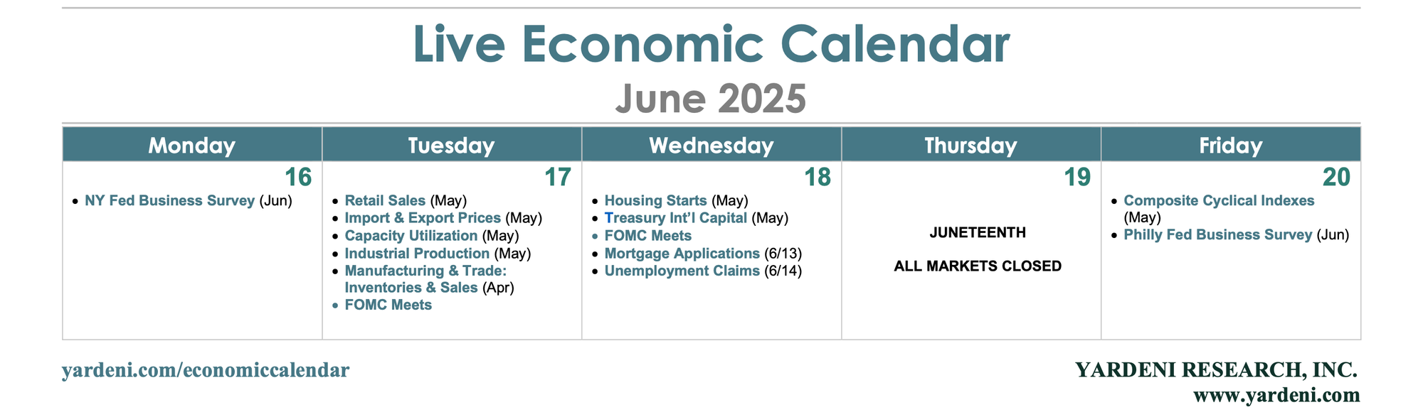 The moment Fed watchers have waited for is finally here—albeit with less drama than many believed a few weeks back. As we've long said, the two-day June Federal Open Market Committee meeting (Tue-Wed) should come and go with the federal funds rate still in the 4.25%-4.50% range that it's been in since December. Even as headline inflation measures appear to moderate, the robust labor market, evidenced by May's 4.2% unemployment rate, leaves Fed Chair Jerome Powell with little urgency to ease.