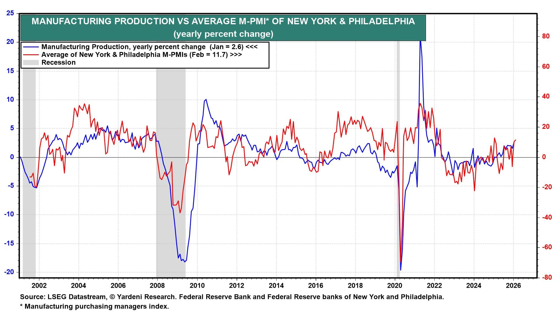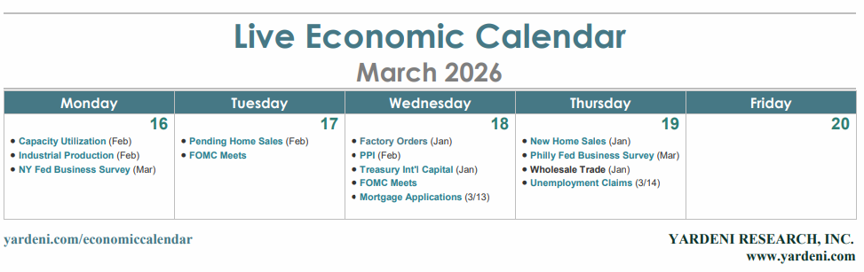 (3) Fed regional business surveys. The regional Fed business surveys could offer timely reality checks on where the economy stands. The New York Fed survey (Mon) starts the week, followed by the Philly Fed (Thu).