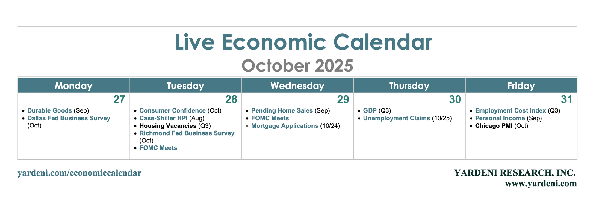 (2) Regional Fed business surveys. October business surveys from the Dallas Fed (Mon) and the Richmond Fed (Tue) could fill in some blanks about how the economy is faring. The average of the three available surveys weakened this month but suggests that the ISM M-PMI might still rise above 50 (chart).