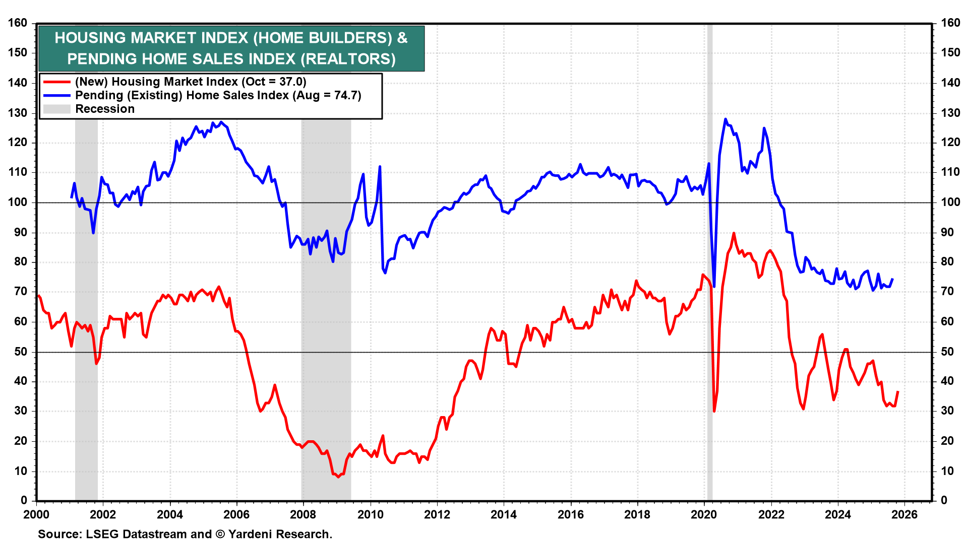 (3) Housing activity. September's pending home sales (Wed) from the National Association of Realtors probably remained relatively weak (chart).