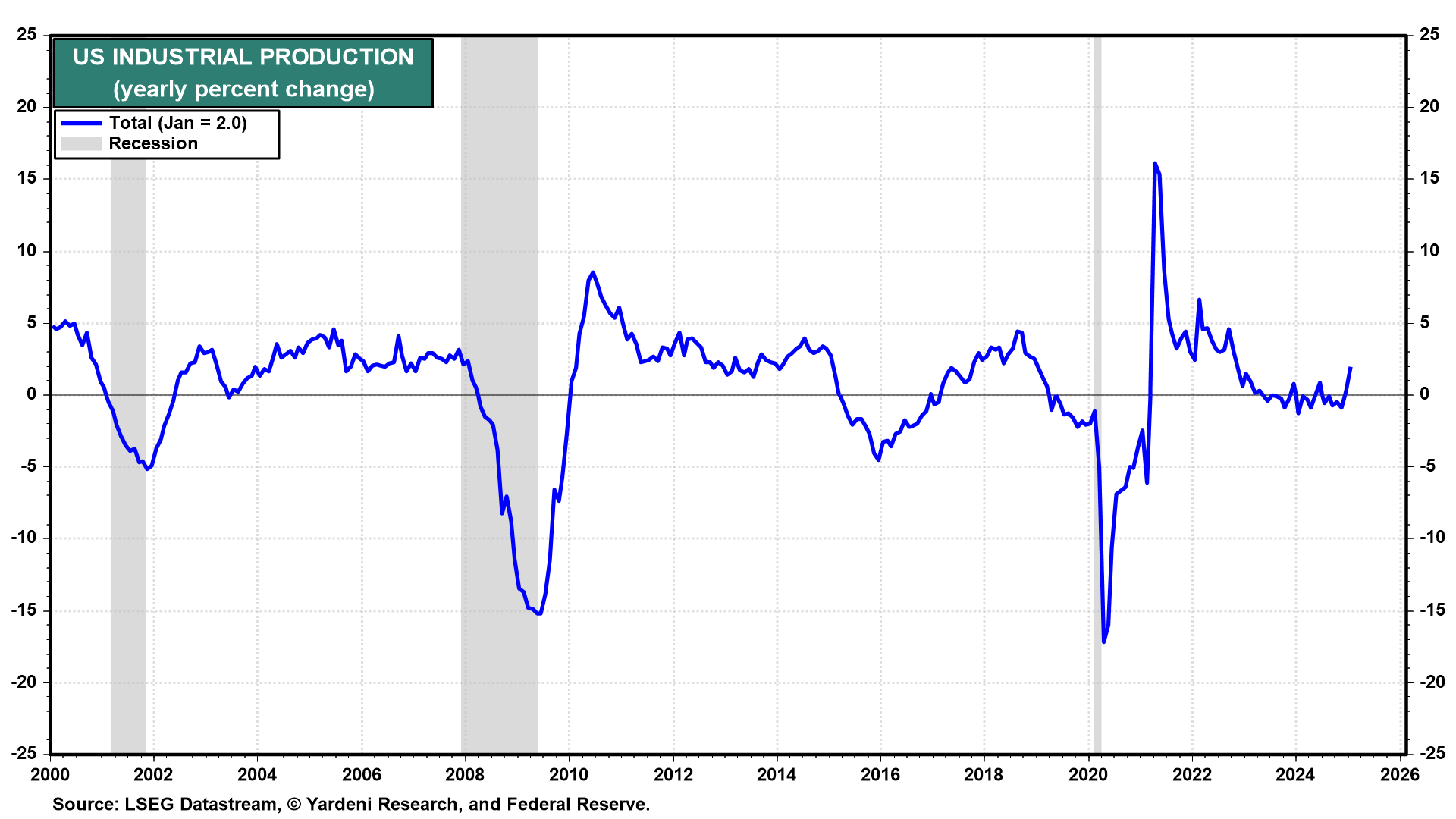 The shortened economic week ahead is an important one for our rolling recovery forecast in the manufacturing sector. January's data suggested that industrial production may be starting a cyclical rebound (chart). This week's early look at February's regional business survey data may confirm that. There will also be updates on the housing sector.
