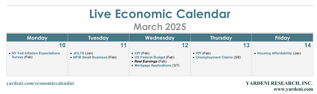 After several weeks of a growth scare, the attention this week will shift back to inflation. The new scare could be stagflation, which is the risk to our more upbeat economic outlook. CPI inflation has been reaccelerating since last fall when the Federal Reserve cut interest rates by 100bps (chart). Businesses may have raised prices in February in anticipation of tariffs.