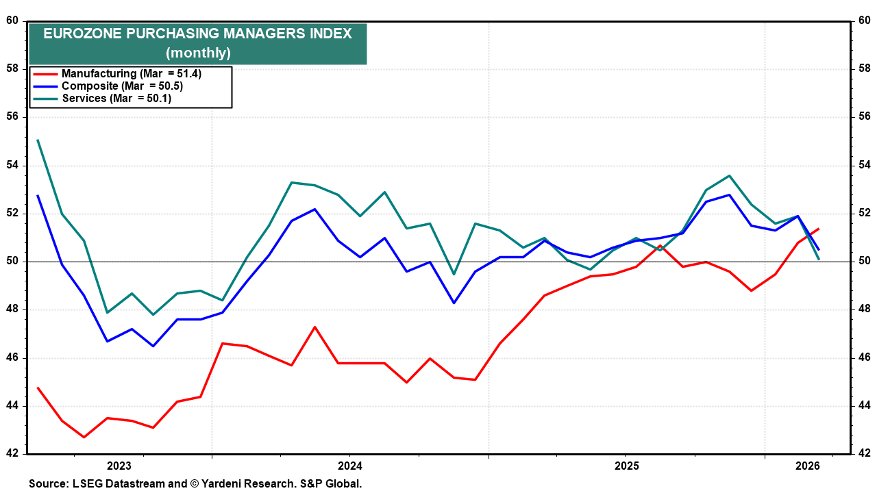 The latest energy crisis is hitting the countries of the European Monetary Union (EMU, or the Eurozone). In 2025, roughly 12% and 8% of the European Union's petroleum and gas imports originated in the Persian Gulf. Unlike the United States, which is an oil and gas exporter, the countries of the EMU are major energy importers. So a spike in energy prices hits the region harder, with higher inflation and weaker growth.