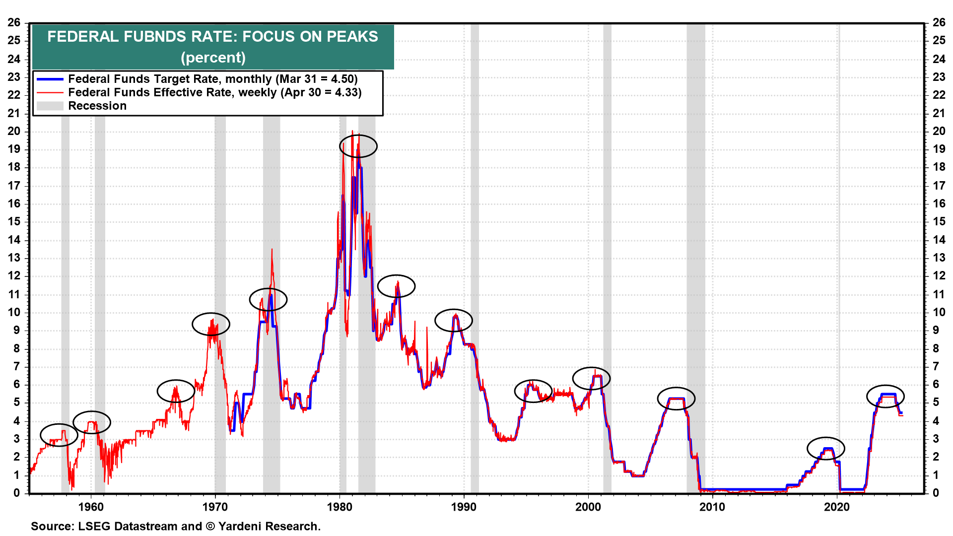 In the past, Fed tightening cycles caused recessions, which forced the Fed to lower the FFR (chart). So far, there has been no recession following the latest tightening cycle. Yesterday, we lowered our subjective odds of a recession from 45% to 35%, as TTT concerns are ebbing somewhat and the labor market remains robust. A recession is still possible. More likely is slower growth with higher inflation over the rest of this year. Given that likelihood, the Fed should remain on hold.