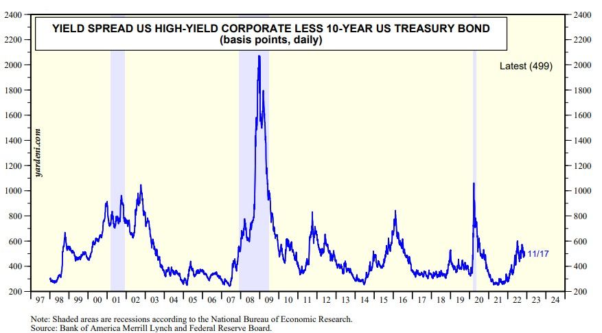 (1) Credit spread. The yield spread between the high-yield corporate bond composite and the 10-year US Treasury has widened from 279bps at the start of this year to 499bps recently (chart). However, it isn’t spiking higher the way it did during previous credit crunches.