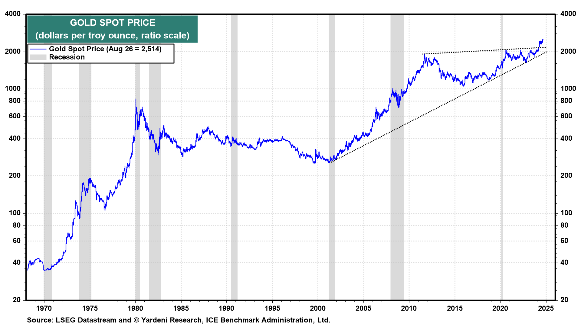 (5) Gold. We continue to recommend overweighting oil and gold in portfolios as geopolitical shock absorbers. Easier monetary policies of the major central banks should also benefit these two commodities, as well as other ones.