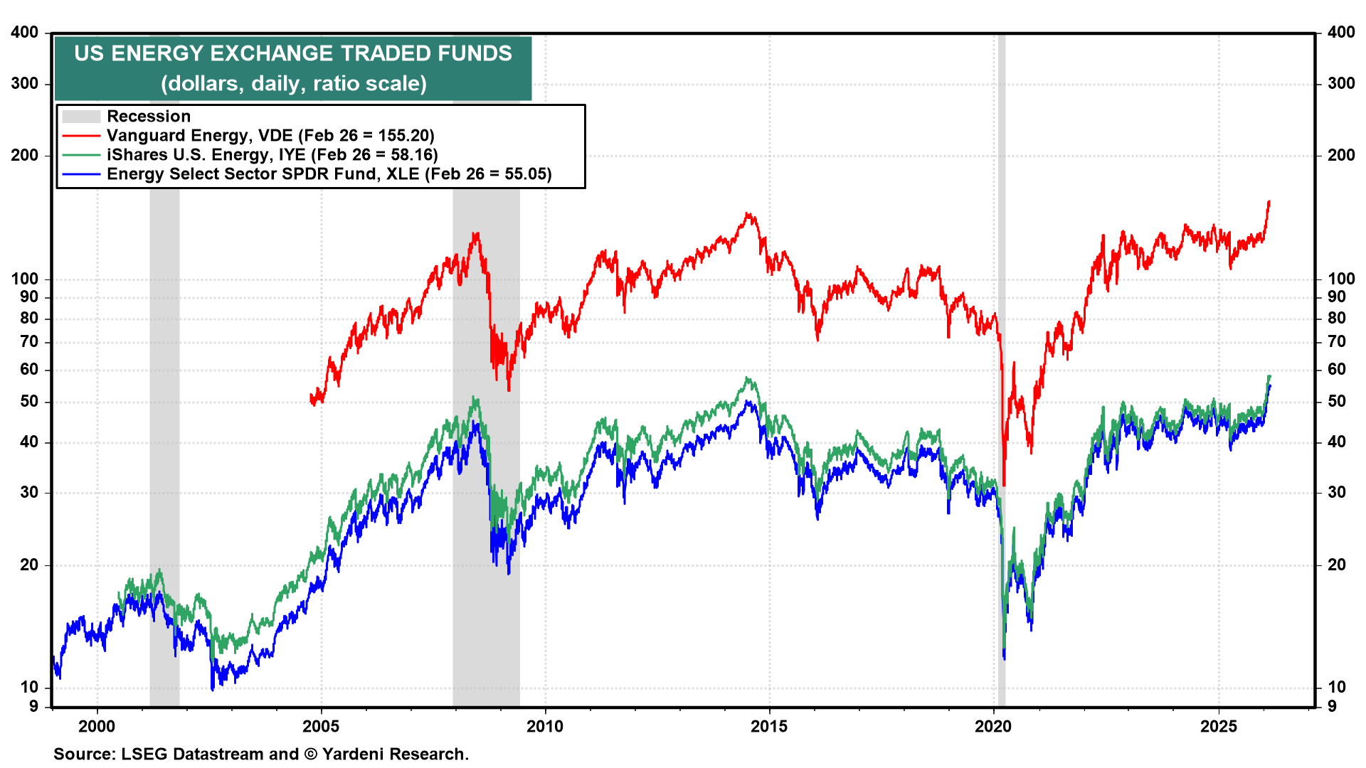 The rebound in oil prices, along with the rebalancing of global equity portfolios, gave a big price boost to US energy ETFs recently (chart). Today's relatively small $1.50 increase in the price of a barrel of crude oil suggests that the market has either discounted a rapid war or isn't convinced it will happen. The Saudis might also announce an increase in their production, though much of it would have to go through the Strait of Hormuz, which Iran has threatened to block.