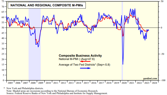 More unsettling for the financial markets might have been the upturn in the prices-paid and prices-received indexes in the Philly and NY regions according to their September surveys (charts). They undoubtedly reflect the increase in oil prices, which we don't think is sustainable given the weakness in the global economy.
