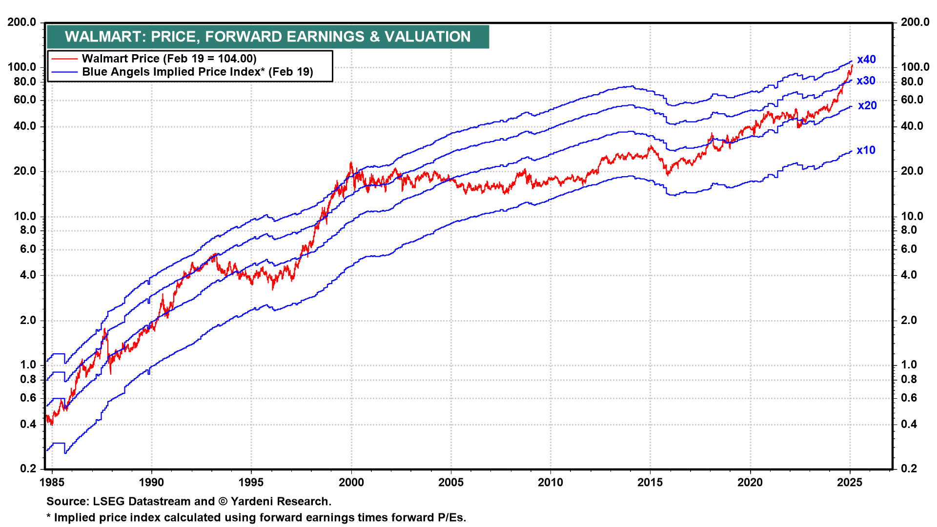 Part of the worry came from comments on the possible negative impact of tariffs. Management’s guidance also reflected negative currency impacts and a hit from acquisitions. On balance, the results and comments weren't too troublesome, in our opinion. What may have been a bigger issue is that Walmart stock was trading at roughly 38 times forward earnings, so any chance that earnings growth could slow sparked a downward rerating of the valuation multiple (chart).
