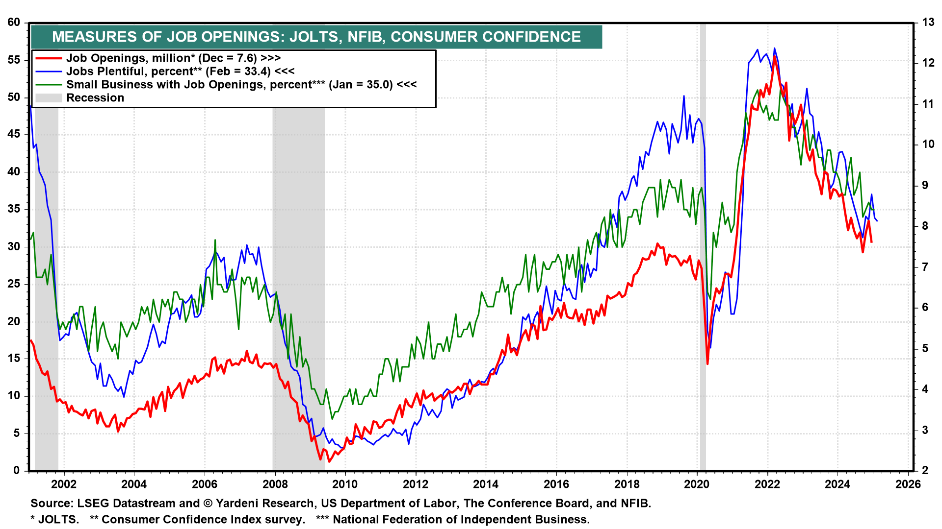 (10) The CCI jobs-plentiful series comes out before the two similar measures of job openings. All together, they show that there are still plenty of job openings. The labor market looks perfectly fine to us. The rebound in the stock market from this morning's selloff suggests that some investors saw a buying opportunity.