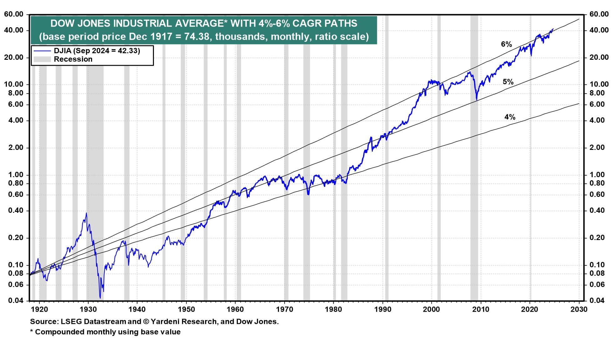 (1) The Dow Jones Industrial Average is on course to hit 60,000 by the end of the decade.
