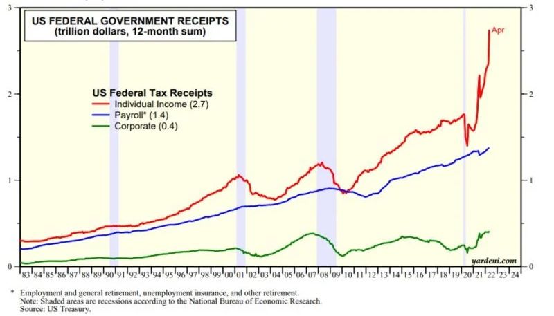 (3) Yes, Virginia, inflation is a tax, and it is showing up in federal tax receipts. Warning to the King: The masses will behead you if inflation is too high for too long.