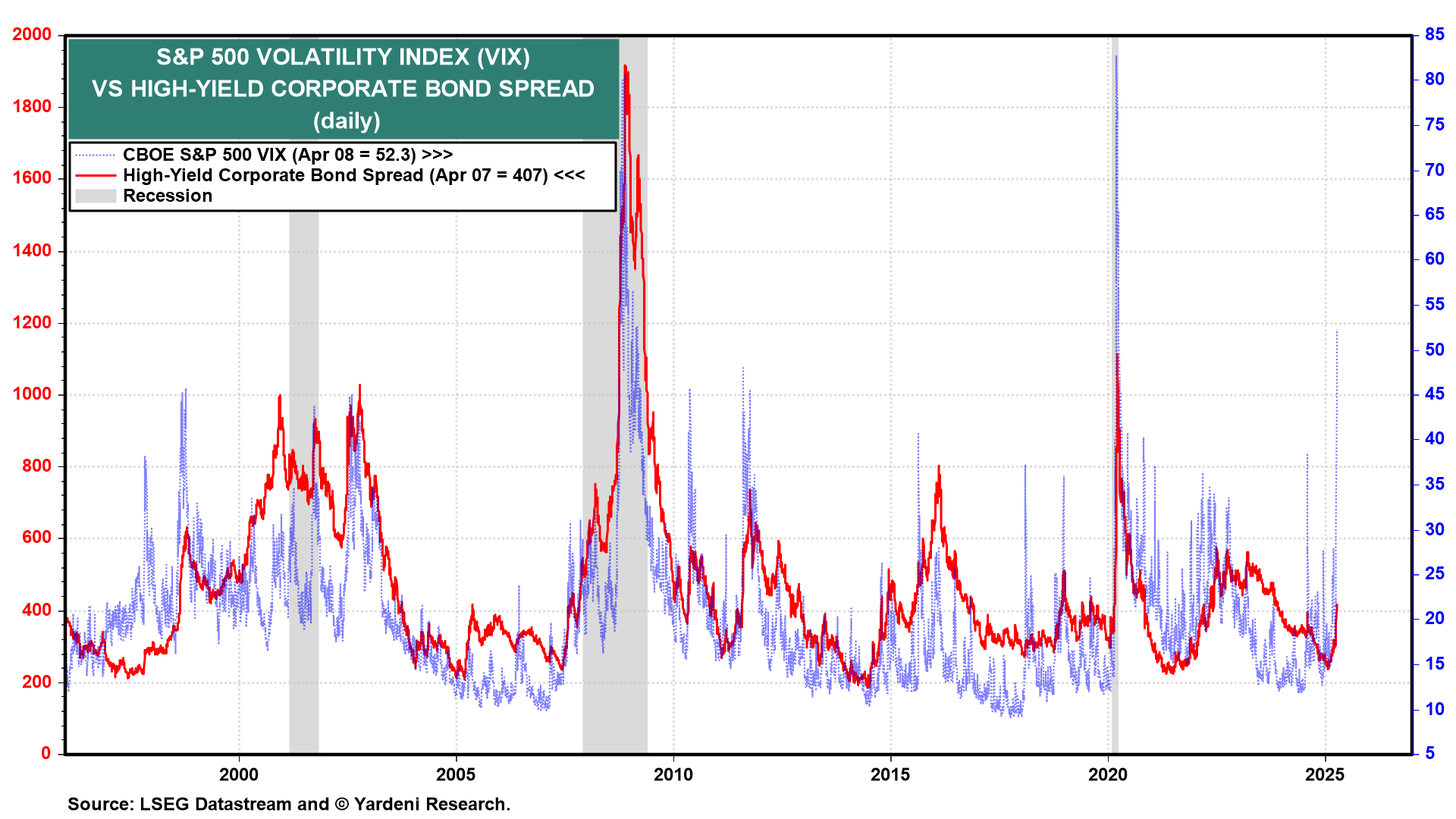 The Stock and Bond Vigilantes are signaling that the Trump administration may be playing with liquid nitro. Something may be about to blow up in the capital markets as a result of the stress created by the administration's trade war. If so, then the S&P 500 will fall into a bear market for sure.