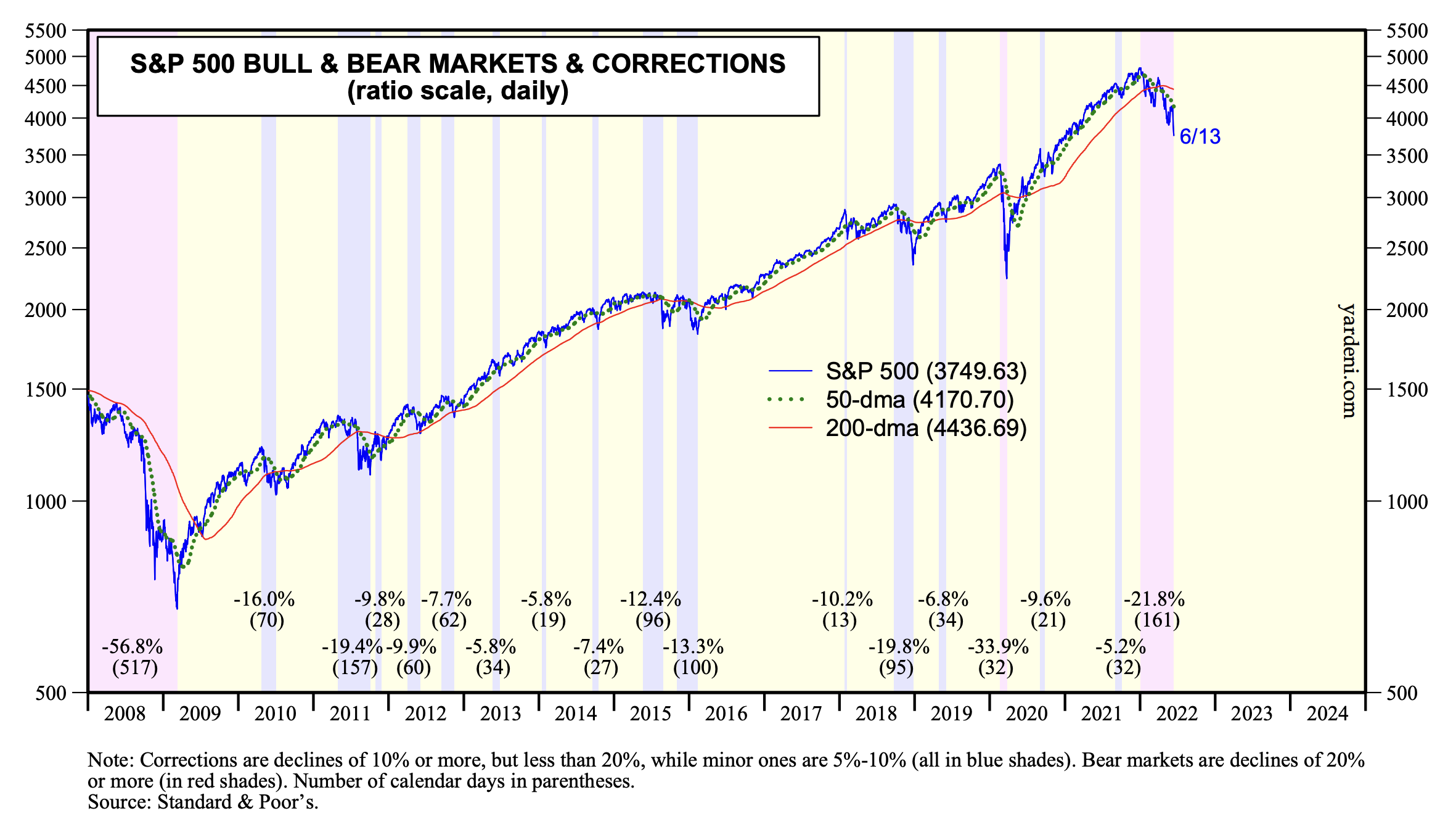 On Monday, the latest S&P 500 correction morphed into a bear market when the index closed down more than 20.0%—specifically 21.8%—below its record-high close on January 3, 2022.