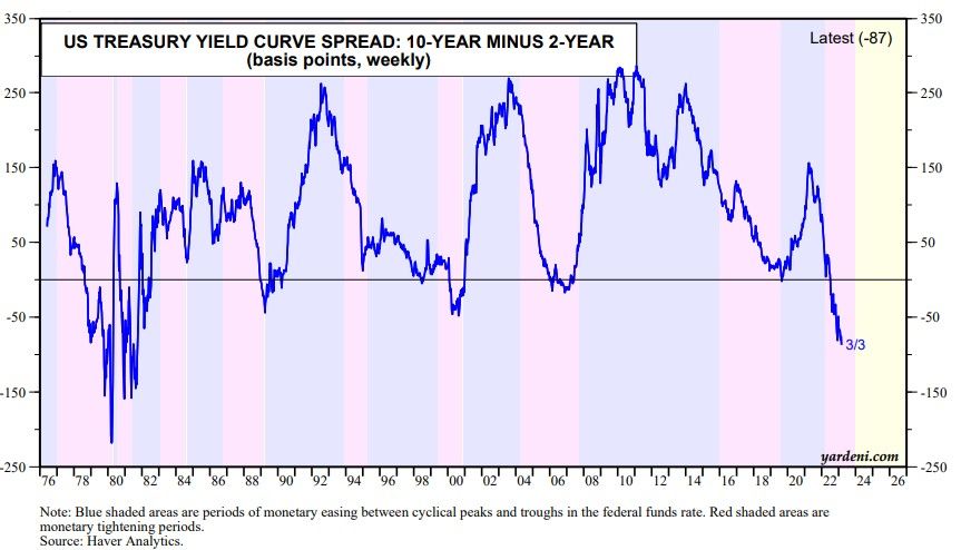 The yield curve remains significantly inverted (chart). In the past, inverted yield curves signaled that investors feared that if the Fed continued to tighten, something would break in the financial system causing a credit crunch and a recession. Is it different this time? Maybe not, but we think that both the credit system and the economy will remain surprisingly resilient to the jump in interest rates since early last year.