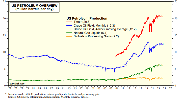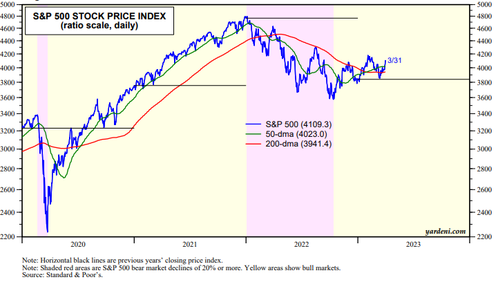 No news is good news. Every day that nothing terrible happens in the banking system is a good day for the stock market. That helps to explain last week's strong rally (up 3.5%) (chart). Yes, but this morning, there's bad news on the energy front as OPEC+ is cutting oil production sending oil prices higher.