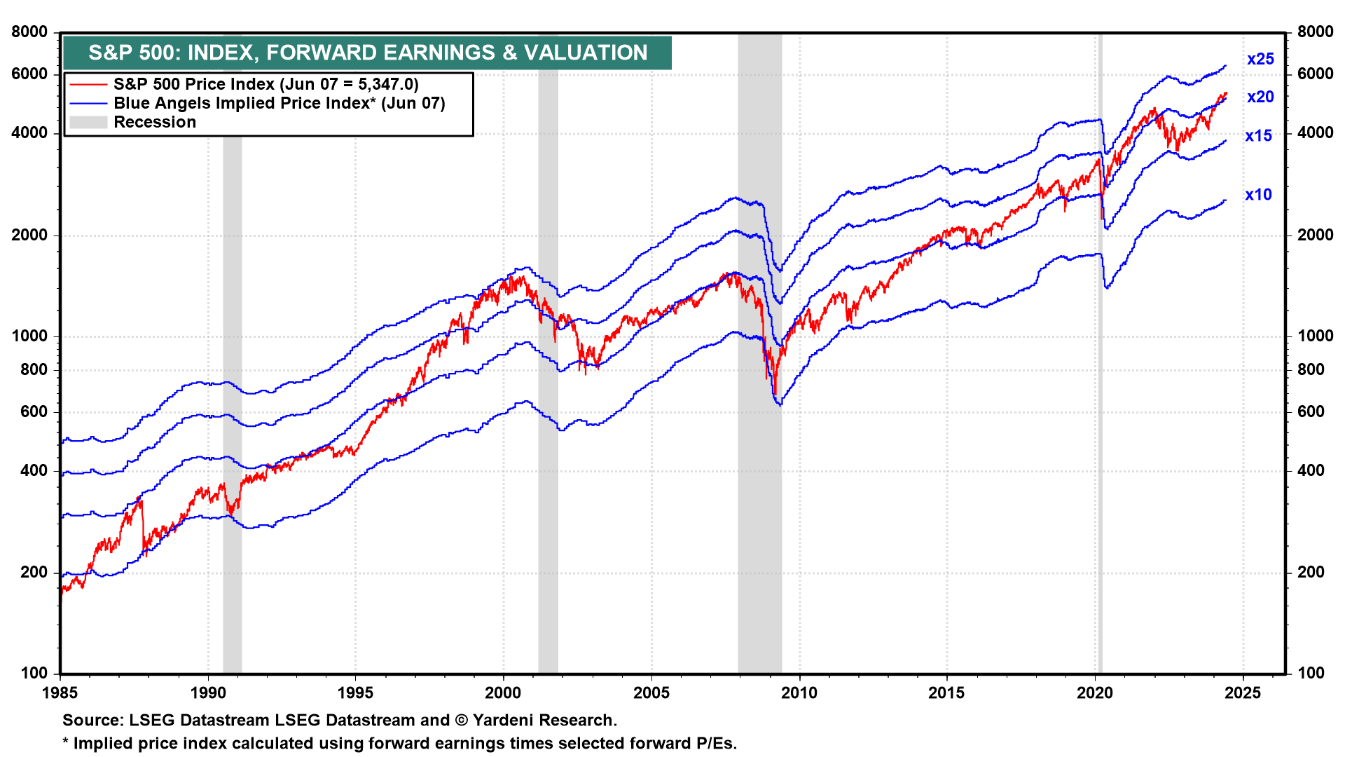 Our Blue Angels framework shows that the S&P 500 was back in record high territory last week as S&P 500 forward earnings rose to yet another record high (chart). Meanwhile, the S&P 500's forward P/E has been relatively steady just above 20.0 in recent weeks.
