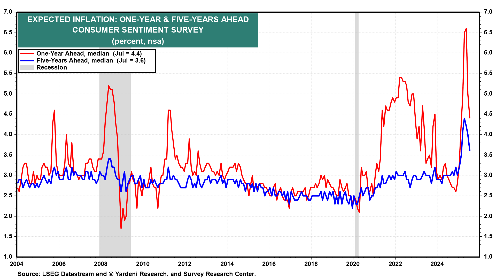 The latest batch of weaker-than-expected inflation reports, including the drop in July's expected inflation series, might persuade Fed Chair Jerome Powell and his colleagues to signal they are leaning toward lowering the federal funds rate at the September 16-17 meeting, as markets expect (chart).