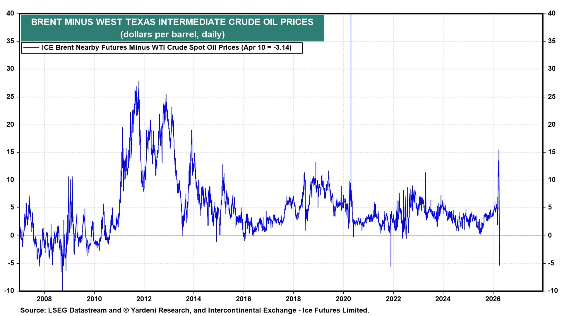 The financial markets may be learning to live with the war in the Middle East, as they have with the war between Ukraine and Russia. China imports lots of Iranian oil. The White House clearly is leaning on China to pressure Iran to end the war, and also threatened today to impose a 50% tariff on China if Beijing sends advanced defense equipment to Tehran. President Donald Trump offered to facilitate the sale of cheaper oil from Venezuela to China. The unusual negative spread between the Brent and WTI prices suggests that traders believe that foreign demand for US crude oil is increasing as an alternative to oil supplied by Arabian Gulf producers (chart).
