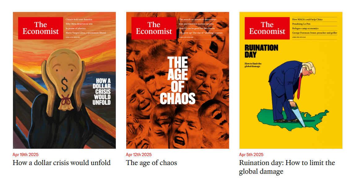 We don't recall this ever happening before. During the past three weeks, The Economist has featured three very bearish cover stories suggesting that the dollar might be on the verge of collapse and that so might the US stock and bond markets along with the global economy (chart). Contrarians of the world, unite!