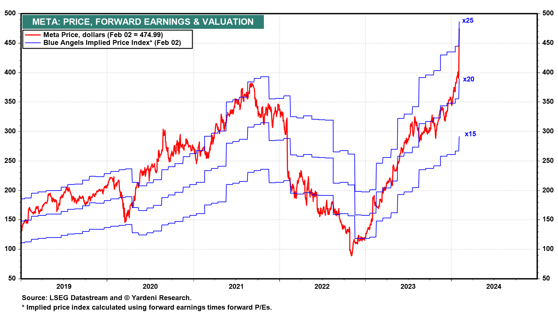 Meta is leading the stock market to where it has never gone before, i.e., to new record highs. Its stock price rocketed 20.3% on Friday, adding $204.5 billion to its market value, the biggest one-day gain by any US company in history. Industry analysts scrambled to raise their earnings forecasts for the company following Thursday's after-the-close earnings call with management (chart). As a group, the Magnificent-7 remain magnificent.