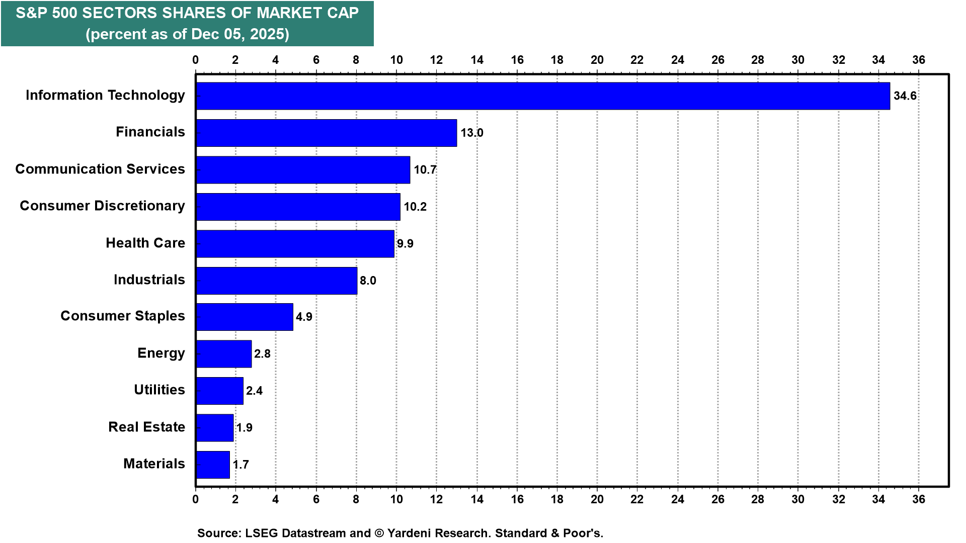 (1) Rebalancing S&P 500 portfolio. The problem is that the first recommendation has worked so well that the two S&P 500 sectors now account for a record 45.2% of the index's total market capitalization (chart).