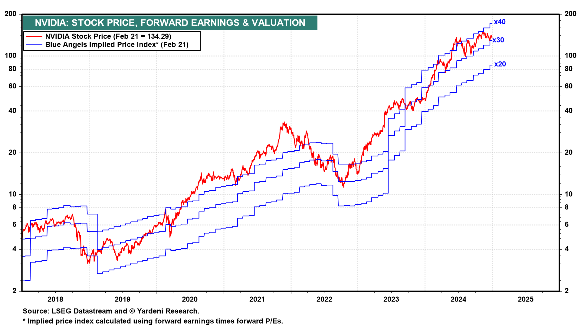 We expect that Nvidia's earnings report, coming Wednesday after the close of trading, will be stronger than expected, providing a boost to the market (chart). We expect to hear guidance that DeepSeek won't kill spending on AI infrastructure, including datacenters. Elon Musk's xAI project utilized 200,000 Nvidia H100 GPUs. The main risk is that Nvidia will announce yet another delay in its highly anticipated Blackwell GPU, which was first announced in March 2024.