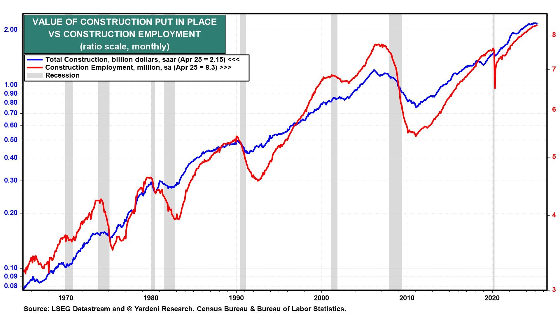 So is the economy slowing or speeding up? Yes, it is doing both according to today's batch of economic indicators. No wonder that neither stocks nor bonds did much today. The calm in the stock market was notable given that President Donald Trump was Tariff Man again on Friday, blasting China for not abiding by the temporary and partial tariff truce with the US and doubling the tariff on steel and aluminum from 25% to 50%. The gold market went up on that news as well as on reports that Ukraine destroyed a third of Russia's strategic bomber fleet with drones. The Ukrainians are coming!