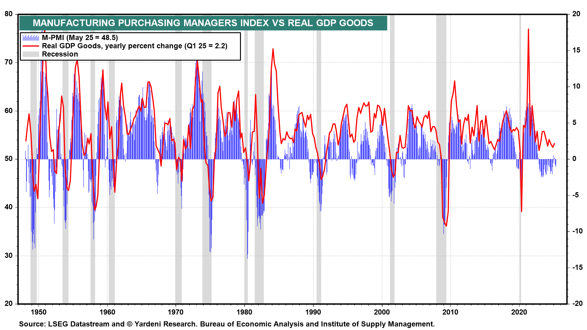 In the past, the M-PMI was a reasonably good coincident monthly indicator of the y/y growth rate in quarterly real GDP of goods (chart). Over the past couple of years, the latter has been much stronger than suggested by the M-PMI. So the M-PMI has been a misleading indicator of the goods sector. That might be attributable to the rapid growth of information technology hardware and software, which may not be properly reflected in the M-PMI. Software is included in capital spending and treated as a GDP good.